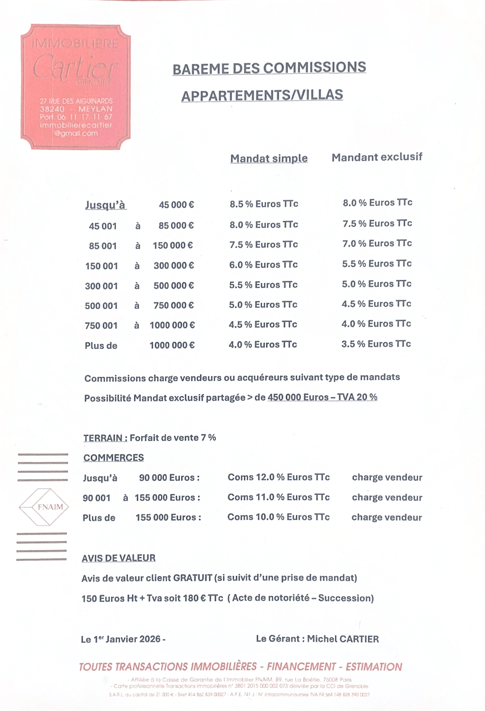 Depuis 27 ans, l’agence immobilière Cartier adhérente FNAIM, c’est avant tout un service sur mesure et personnalisé, presque artisanal au bon sens du terme. L’entreprise a à coeur de trouver les biens qui correspondent à votre demande, et tout cela dans une ambiance familiale et humaine.